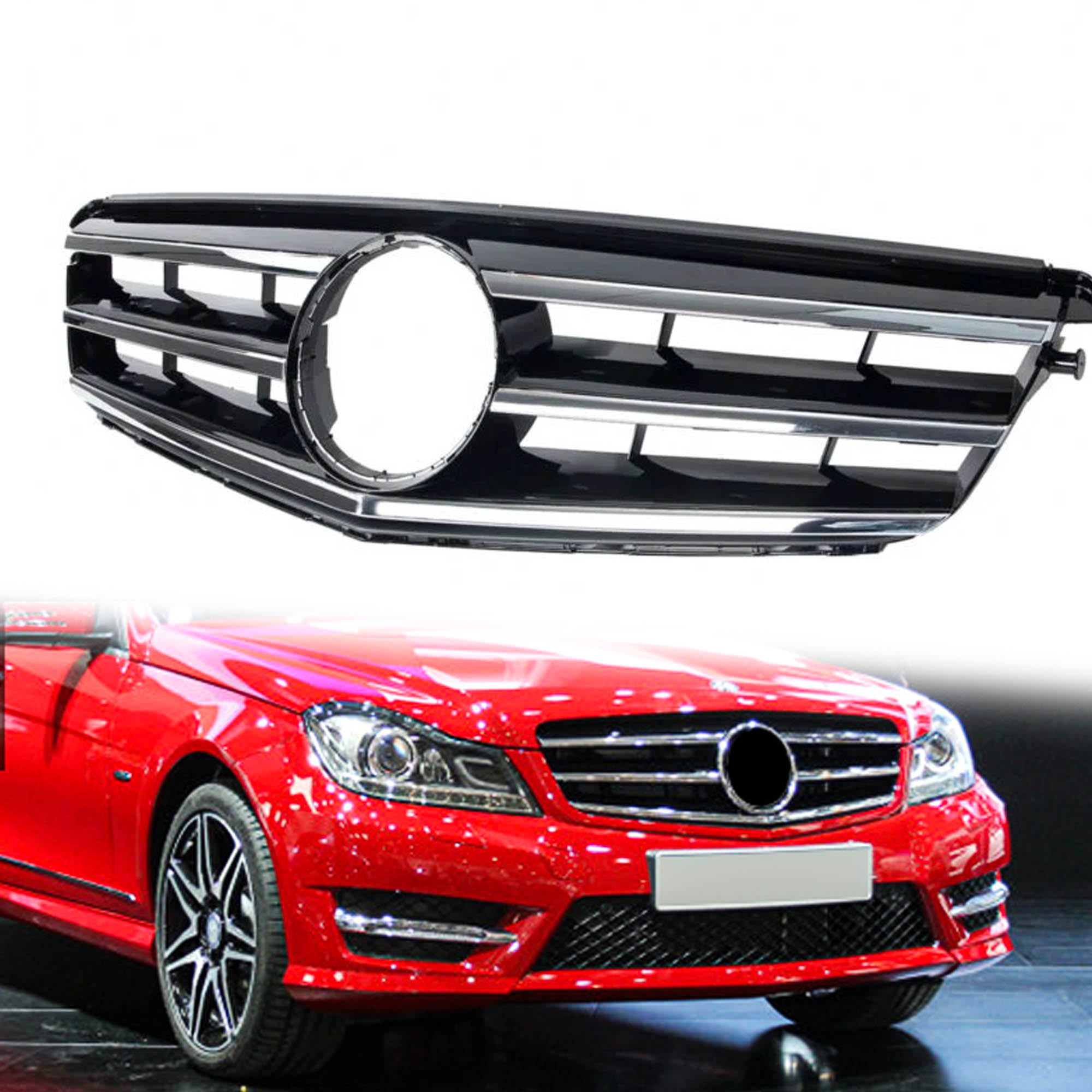 Es handelt sich um ein stück Kühlergrill für Mercedes-Benz C-Klasse W204 / S204, 2007-2014. Optimale Ersatzteil.