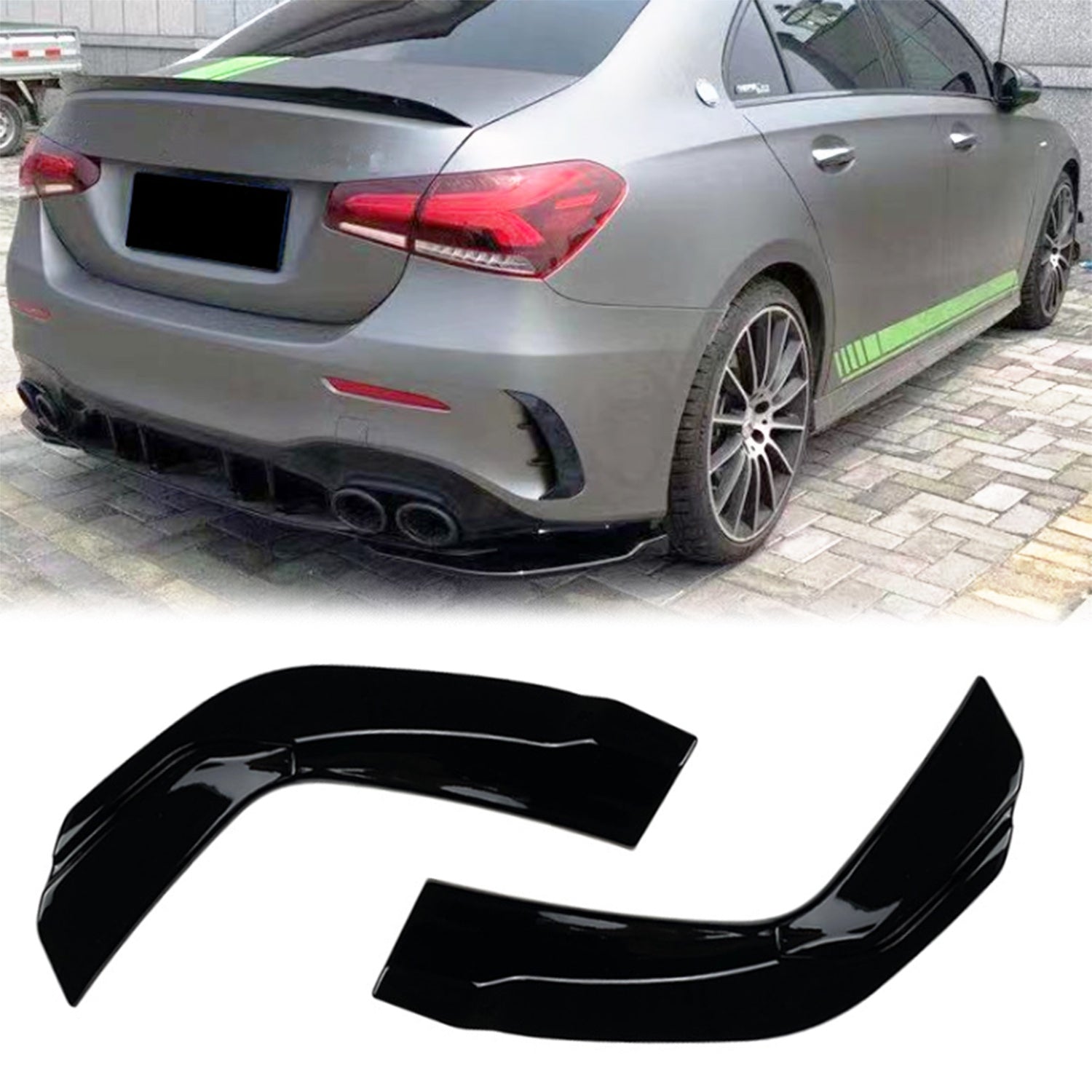 Heckansätze für Mercedes Benz W177 Limousine A35 / A45 AMG. Die Kombination verleiht Ihrem Auto ein dynamischeres und sportlicheres Aussehen!