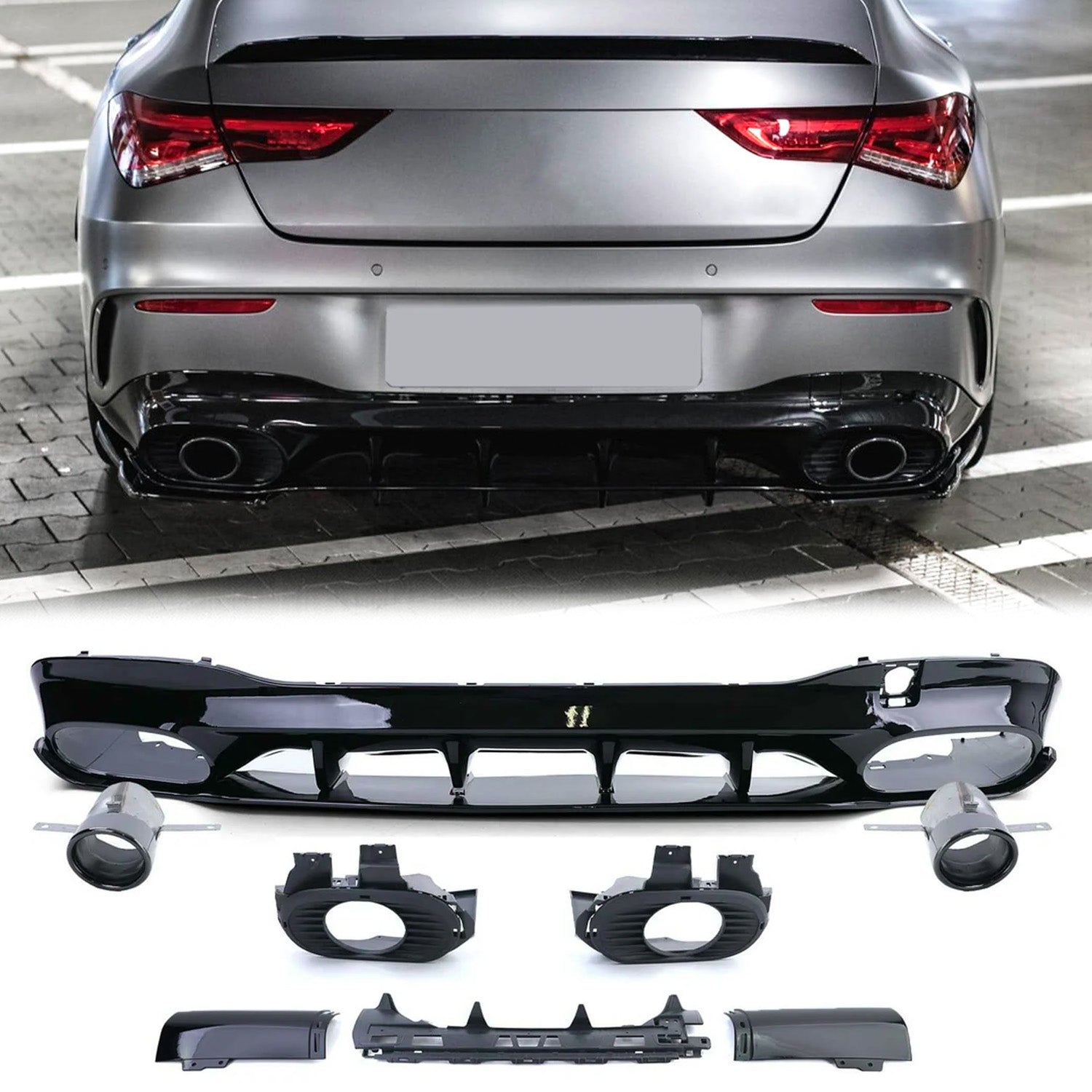 Es handelt sich um ein satz Heckdiffusor für Mercedes Benz CLA-Klasse C118 / X118 Optimale Body-Kits.