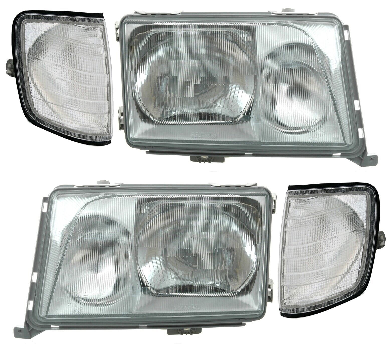 Es handelt sich um ein paar Scheinwerfer und Blinker mit E-Zeichen für Mercedes Benz E-Klasse W124 / S124 / C124 / A124, 1993 - 1996. Optimale Ersatzteile.