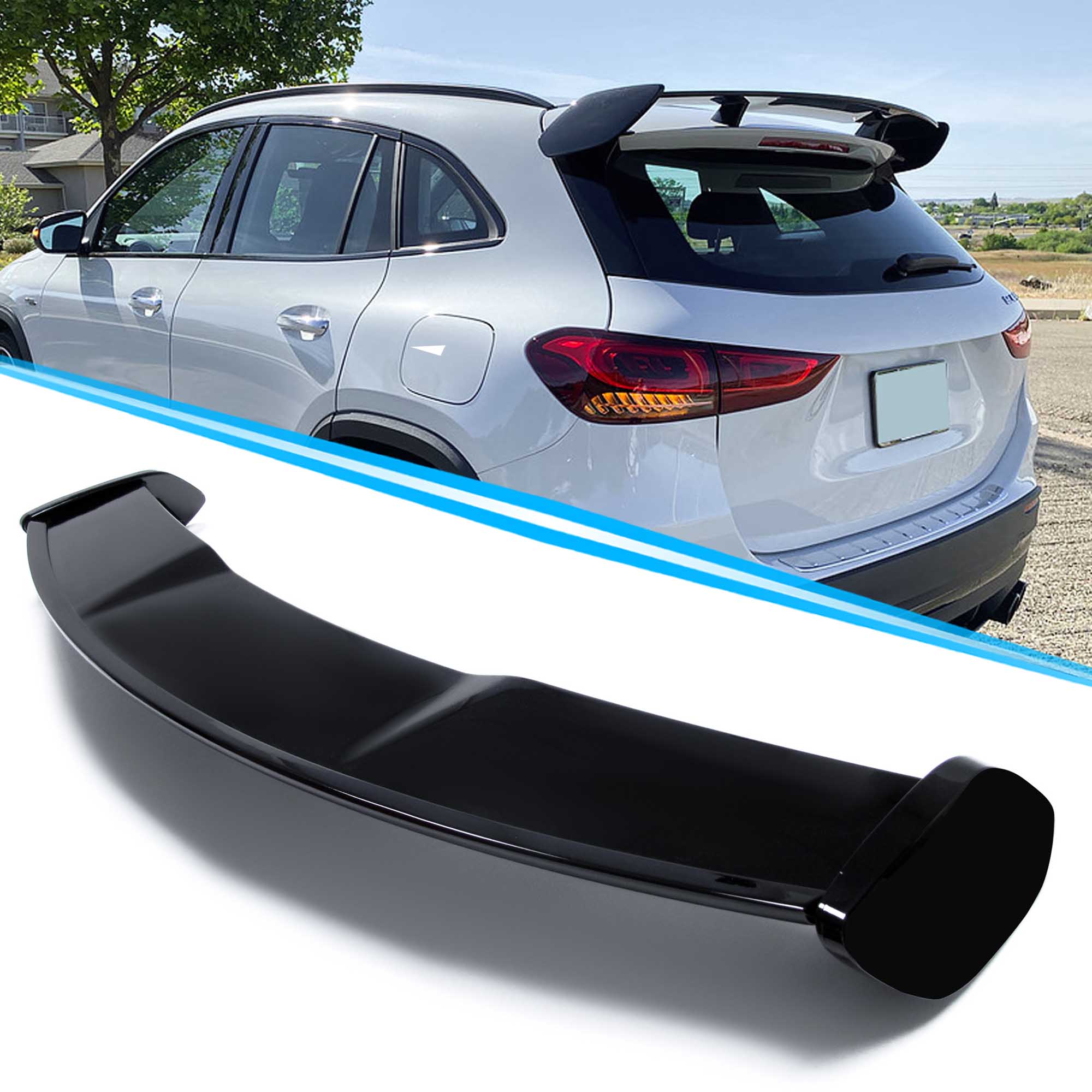 Dieser Heckspoiler ist aus ABS verarbeitet. Schwarz mit Hoch-Glanz-Klarlack versiegelt. Das Design ist ganz sportlich und optik. Es macht Ihrem GLA cool und attraktiv sein.