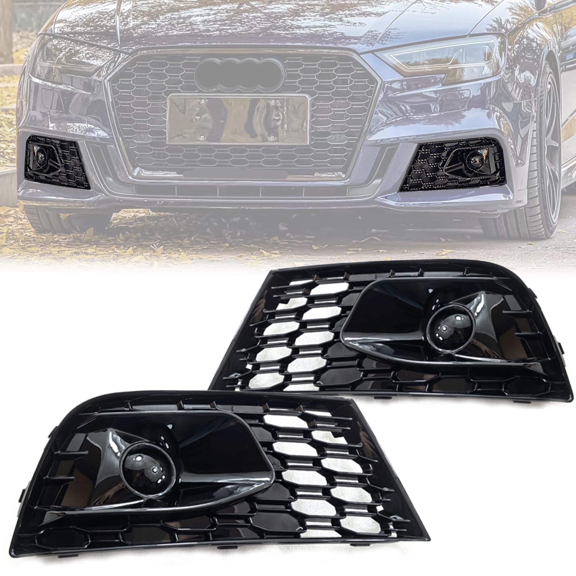 Dieser Waben Gitter für die Nebelscheinwerfer wurde speziell für den A3 8V mit S Line entwickelt. Er gibt Ihrem Fahrzeug ein viel aggressiveres und sportlicheres Aussehen.